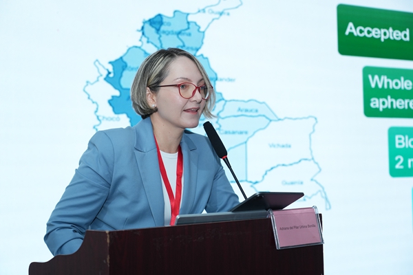 哥伦比亚红会血库医学主任及罗萨里奥大学生物医学科学系医学与健康科学学院职业副教授Dr. Adriana Urbina发表了《哥伦比亚血筛的方法、现状和未来趋势》主题报告。她从哥伦比亚医疗制度及血站分布入手,探讨了当前血筛项目的筛查方法及其挑战,强调了血筛核酸检测具有优越性,能广泛识别病原体突变株,降低感染风险,确保血液安全。同时,她提出了利用分子方法学筛查虫媒病毒等创新思路,并对k8·凯发生物分子血筛检测方案高度赞赏。